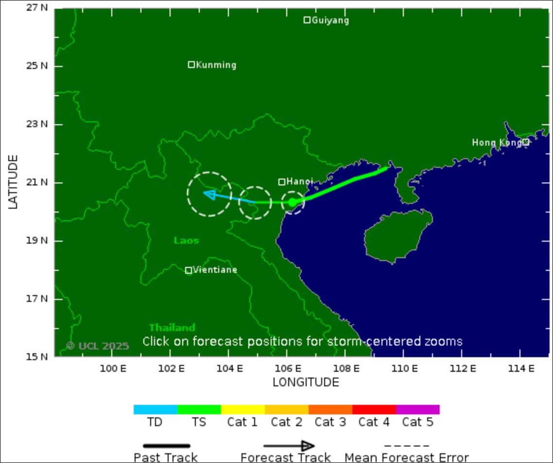 21/07 : Selon le Centre national de prévision hydrométéorologique, à 4 heures du matin le 21 juillet, le centre de la tempête était situé à 21,5 degrés de latitude nord et 110,4 degrés de longitude est, juste au-dessus de la péninsule de Leizhou (nord), à environ 275 km à l’est de la côte de Quảng Ninh-Hải Phòng.