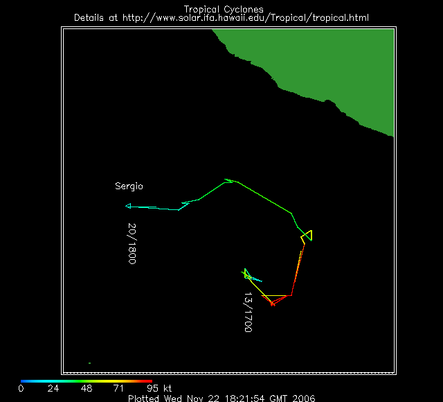 Sergio se trouve à environ 500 kilomètres au sud-ouest de la station balnéaire de Manzanillo, avec des vents soufflant à 105 km/h en rafale, ont précisé les prévisionnistes. La tempête devrait se diriger vers le nord et se renforcer pour devenir un ouragan ce soir ou demain, lorsqu'elle se trouvera à environ 200 kilomètres de Manzanillo.
