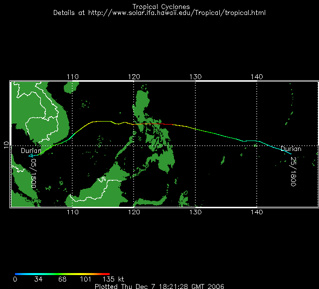 29/11: Comme prévu Durian sest nettement renforcer ces dernières 24 heures. Le typhon est actuellement classé en catégorie 4/5 sur léchelle de Saffir Simpson.
