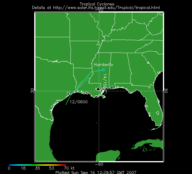 Une dépression tropicale s'est renforcée dans le Golfe du Mexico et s'est renforcé pour devenir le cyclone de catégorie 1 Humberto. Actuellement le système génère des vent moyens de 126 km/h avec des rafales à 150 km/h.