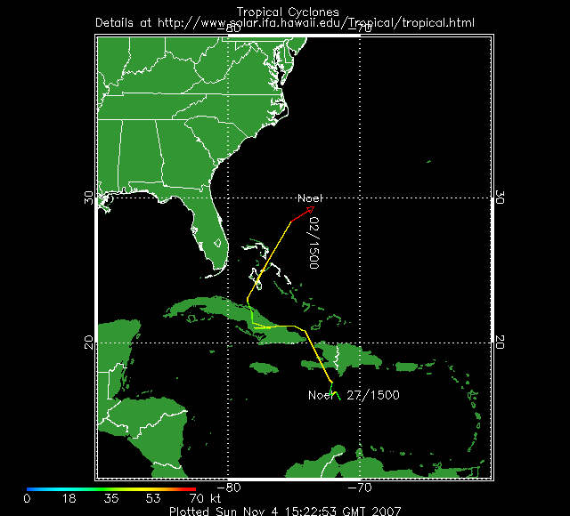 02/11 : La tempête tropicale Noël s'est transformée en ouragan de catégorie 1 au-dessus de l'océan Atlantique après avoir balayé le Nord des Caraïbes, où elle a fait au moins 108 morts.