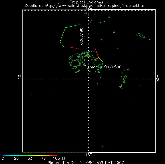 Daman devrait occasionner d'importantes inondations dans les zones basses de l'île et causer des dégâts graves aux habitations.Les habitants des îles de Lau et Lomaiviti, et de celles de Vanua Levu ont été invités à se réfugier dans les refuges mis à leur disposition. Jusqu'à 250mm de pluie sont attendus sur les îles de Lau et Lomaiviti, et de Vanua Levu, où vivent respectivement 10.000 et 80.000 personnes.