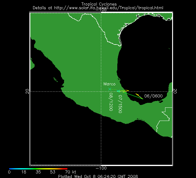 La tempête tropicale Marco s’est formée dans le Golfe du Mexique. Le système qui est située à environ 120 kilomètres à l’Est de Veracruz, se délace vers l’Ouest Nord-Ouest à la vitesse moyenne de 14 km/h.