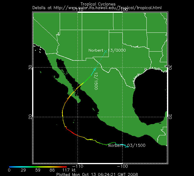 Le cyclone de catégorie 1/5 sur l'échelle de Saffir-Simpson progresse vers les côtes mexicaines avec des vents soutenus à 150 km/h. Norbert a un très grand rayon d'action et il devrait frapper le Sud de la Basse Californie d'ici 36 h.