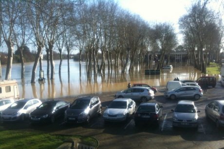 14/02 : De nouvelles pluies concerneront le bassin de l'Adour aujourd'hui, tandis que l'onde de crue se propage petit à petit en aval, en direction de l'ouest des Landes. C'est la ville de Dax qui sera touchée par le pic de crue cet après-midi.