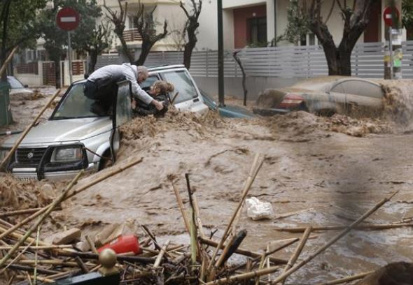 Des pluies diluviennes à caractère orageux ont provoqué des inondations notable à Athènes et dans sa région. Dans la capitale les principaux axes routiers ont été transformés en torrents, tandis que des stations de métro ont été fermées et l'alimentation électrique perturbée.