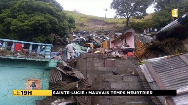 Des pluies torrentielles se sont abattues sur le Sud des Petites Antilles et ont provoqué la mort d'au moins 6 personnes à Sainte-Lucie, 13 autres à Saint-Vincent et des dégâts importants à la Dominique.