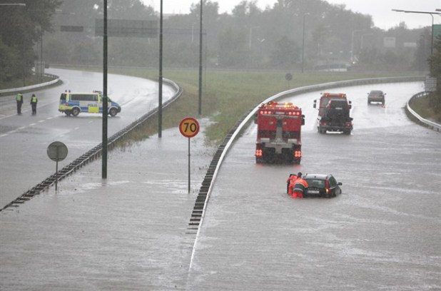 De fortes pluies et des inondations subites se sont abattues sur la Suède et le Danemark. Au Danemark des plongeurs ont dû secourir des personnes coincées dans des véhicules submergés. Les pluies, qui ont commencé durant la nuit et se sont poursuivies dimanche, ont forcé l’évacuation de résidants dans certains secteurs.