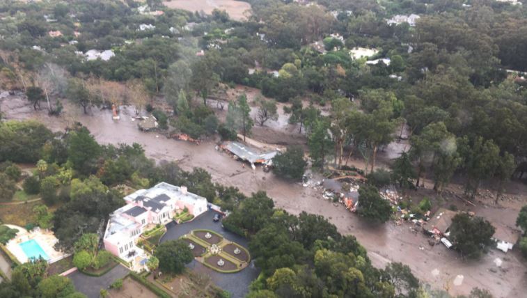 Des coulées de boue ont emporté plusieurs maisons, dans le sud de la Californie. Au moins 17 victimes sont à déplorer ainsi que 8 disparus. Le comté de Ventura a reçu la plus grosse quantité de pluie avec 13 centimètres cumulés en 24 h, d'après les services météorologiques de Los Angeles.
