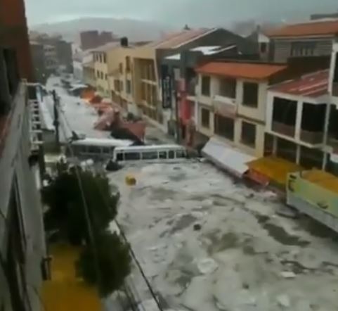 Une courte période de pluies torrentielles et de grêle  a provoqué des inondations soudaines dans certaines parties de la ville de Sucre dans le département de Chuquisaca, en Bolivie .