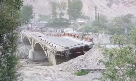 Une inondation liée au débordement d'un lac glaciaire du glacier Shishaper au Pakistan a emporté le pont Hassanabad à Hunza sur la route du Karakoram reliant le Pakistan et la Chine.