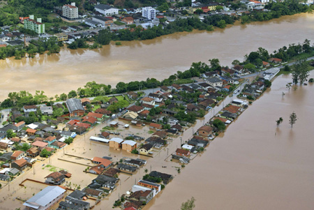 25 et 26/11: Après des jours de pluies torrentielles, des inondations et des glissements de terrain ont fait au moins 128 morts, 26 disparus et 80.000 sans-abri dans le sud du Brésil selon un nouveau bilan publié par les autorités. Un million et demi d'habitants sont touchés par les inondations et les coulées de boue, environ 150.000 sont privées d'électricité et cinq agglomérations sur 60 sont totalement cernées par les eaux.