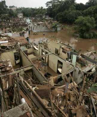 De fortes pluies ont favorisé la rupture d'une retenue d'eau située dans la banlieue de Jakarta en Indonésie. Les inondations consécutives à cette rupture ont inondé des centaines de maisons et fait au moins 100 personnes surprises en plein sommeil.