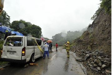 Un glissement de terrain s'est produit sur la route de Kennon près de Tuba aux Philippines. Le mouvement de terrain, vraisemblablement favorisé par les fortes pluies de mousson qui s'abattent sur la région depuis  10 jours a enseveli une jeep et un van.