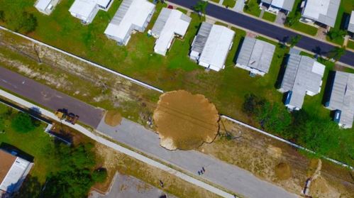 Un important effondrement de terrain (sinkhole) s'est produit dans le ville de Tarpon Springs en Floride. L'effondrement qui s'étend sur une trentaine de mètres a crevé une canalisation d'eau.