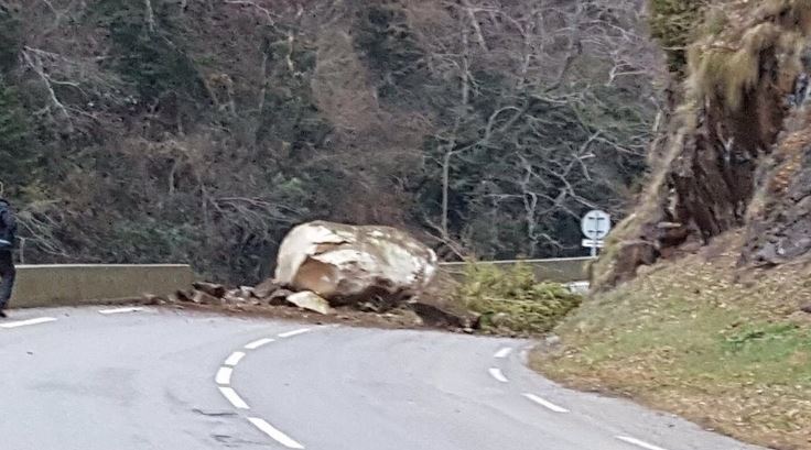 Un éboulement rocheux a eu lieu, vers 17 h 45, à l’entrée des gorges de Luz, à la sortie de Villelongue, en amont du tunnel et de la zone de travaux. Un rocher de 10 tonnes est tombé sur l’arrière d’une voiture. La conductrice a eu très peur. Choquée, elle a été prise en charge par les pompiers.