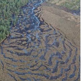 Un glissement de terrain massif de tourbe s'est produit près du parc éolien de Meenbog à Donegal, en Irlande. Le glissement a emporté un certain nombre d'arbres qui ont rapidement glissé sur une pente du parc éolien de Meebog, au sud de Ballybofey.
