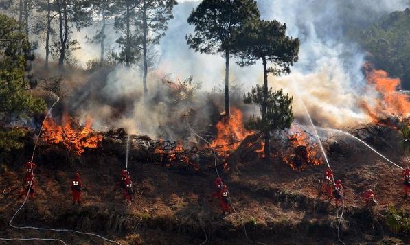 Un incendie de forêt s'est déclaré dans le secteur de Liangshan dans la province chinoise du Sichuan (Ouest de la Chine) et a parcouru plusieurs dizaines d'hecatres de végétation. Les flammes attisées par des vents soutenus menacent directement des exploitations agricoles.