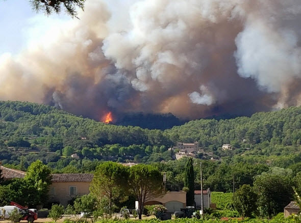 19/07: Le feu de forêt qui a déjà dévasté 560 hectares à Correns (Var) sans faire de victime, a repris cet après-midi, après avoir été circonscrit pendant quelques heures. Une villa et deux camions de pompiers ont été brûlés dans le sinistre, qui s'est déclaré lundi vers 13h et au cours duquel trois pompiers ont également été incommodés par des fumées.