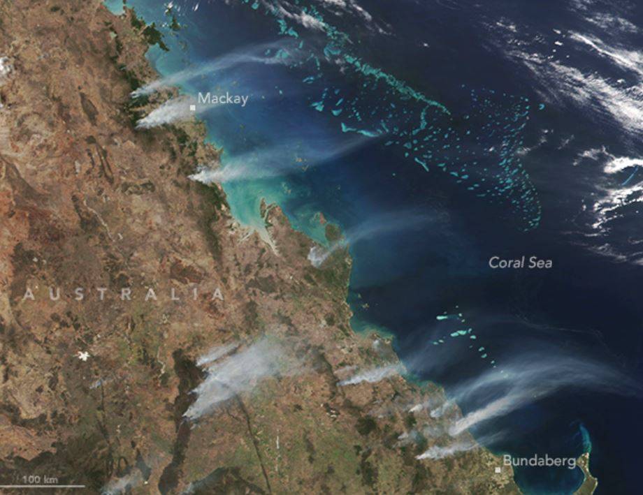 03/12: la chaleur et le vent alimentaient plus de 110 incendies de forêt qui brûlent depuis deux semaines en Australie, où les autorités ont également été alertées par un cyclone tropical au large des côtes. Au moins une personne est décédée des incendies dans l'État du Queensland, où plus de 527 000 hectares ont été rasés.