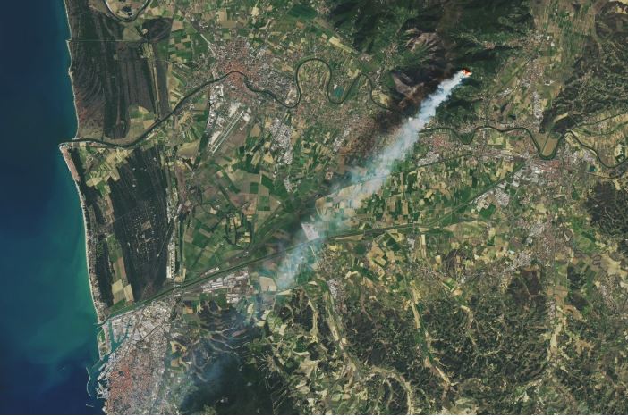 Un incendie de forêt déclenché par une négligence et alimenté par des vents violents dans la petite chaîne de montagnes de Monte Pisano en Italie a parcouru 180 ha de végétation.