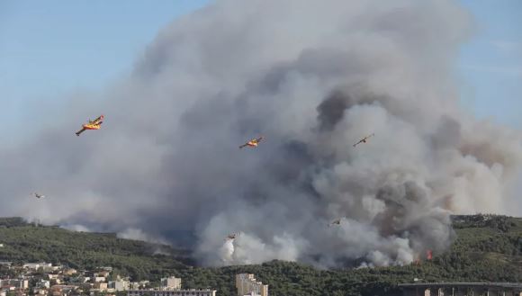 06/08 : un feu de forêt s'est déclenché dans les Alpes de Haute-Provence à Gréoux-les-Bains, au lieu-dit Vallongue, dans un vallon situé en dessous du parc photovoltaïque.