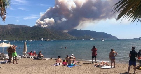 Un incendie de forêt a brûlé mercredi dans la ville portuaire turque de Marmaris , une destination touristique sur la mer Égée , et un hélicoptère de lutte contre les incendies s'est écrasé, faisant 2 morts et des blessés à bord