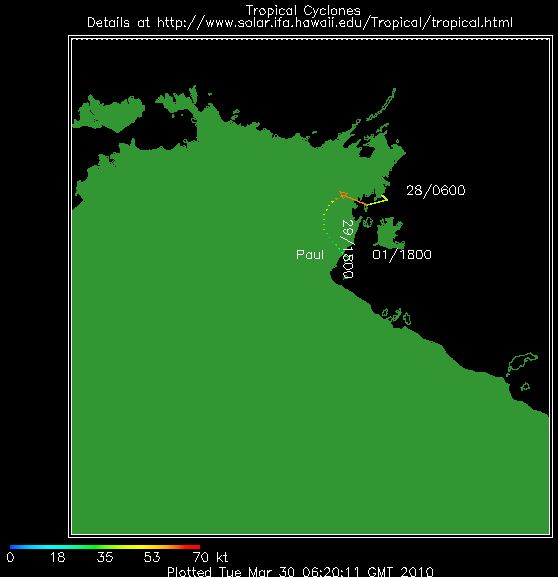 Le cyclone Paul de catégorie 3/5 sur l'échelle de Saffir Simpson a touché les côtes du Nord-Est de l'Australie. Paul générait des vents moyens de 160 km/h avec des rafales beaucoup plus fortes et était accompagné de très fortes pluies.