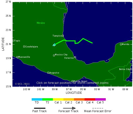 Une grande partie du Mexique a été frappée par de fortes précipitations comprises entre 100 et 200 mm liées au passage de la tempête tropicale Arlene étant passée par les Etats de l'est du pays. La tempête tropicale a fait au moins 19 morts et près de 300.000 sans-abri au Mexique.
