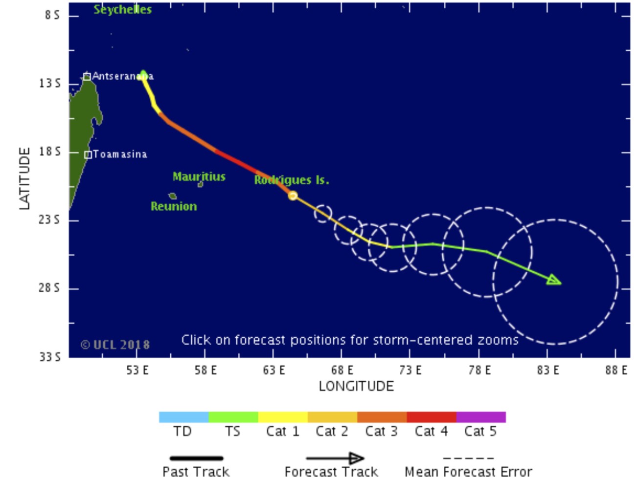 Le cyclone tropical GELENA a transité à environ 50 km au Sud-Ouest de Rodrigues durant la nuit. L'île a certes évité l'anneau de vents violents entourant l'oeil, mais a tout de même ressenti des conditions cycloniques.