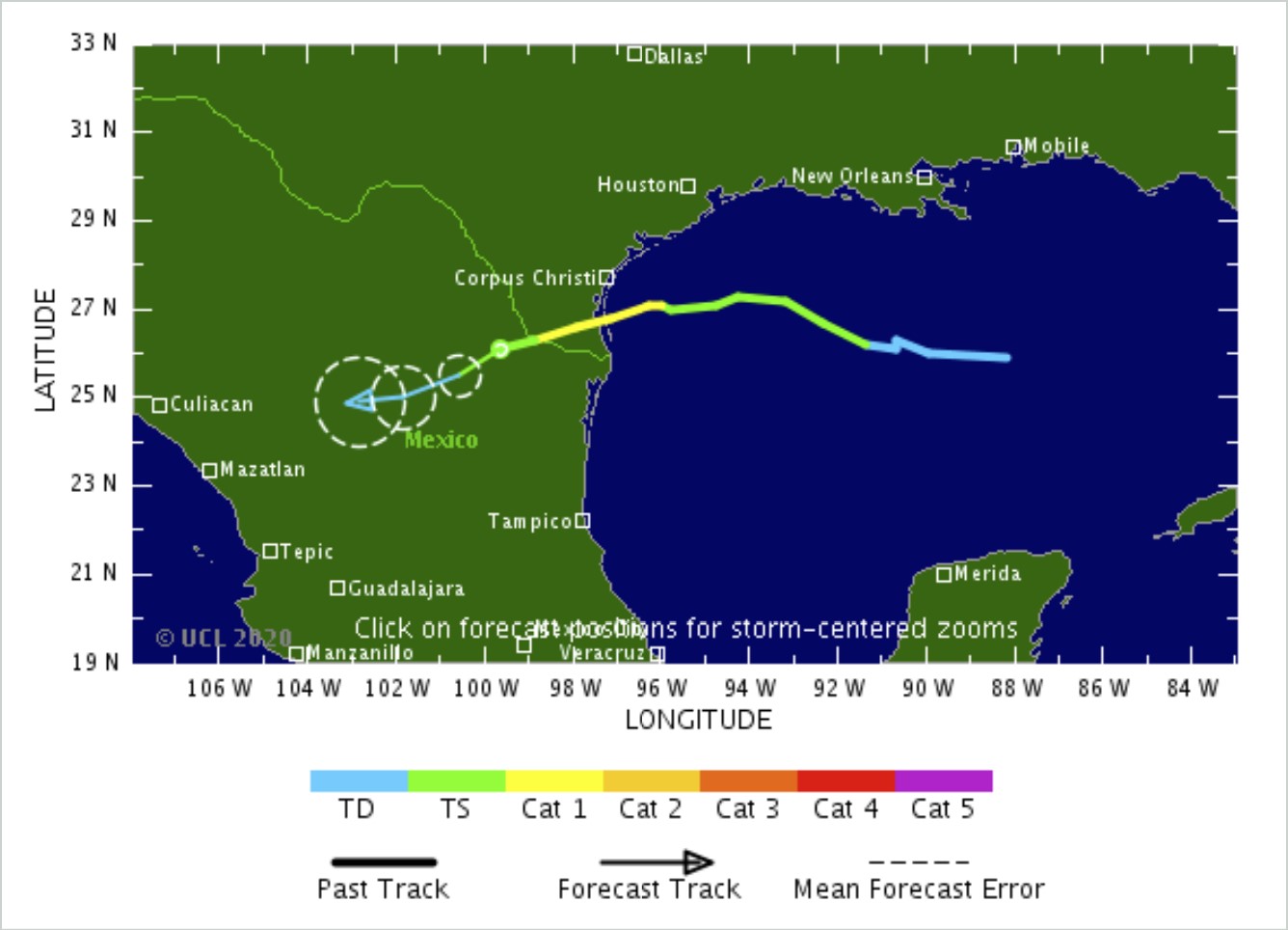 26/07 : Après avoir touché terre au Texas en tant qu'ouragan de catégorie 1, Hanna s'est affaiblie dans une dépression tropicale alors qu'elle traversait le Mexique, provoquant de graves inondations qui ont causé des dommages matériels considérables, tué au moins cinq personnes et laissé six autres portées disparues dans les États du nord-est.