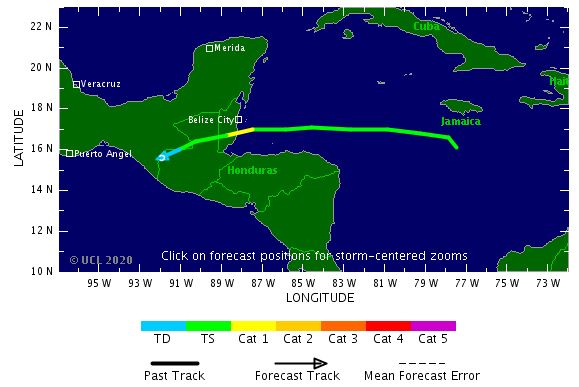 Nana, venant de la mer des Caraïbes a balayé dans la nuit de mercredi à jeudi la côte centrale du Belize avec des vents et pluies intenses, provoquant des chutes d'arbres et des coupures d'électricité, selon le service national de météorologie et de prévention des catastrophes (NEMO).
