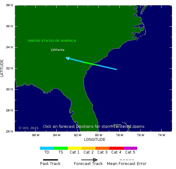 La tempête tropicale "Danny" -- la 4 e tempête nommée de la saison des ouragans de l'Atlantique 2021 -- a touché terre en Caroline du Sud à 23h30 UTC le 28 juin 2021. Il s'agit de la première tempête nommée à toucher terre dans l'État de Caroline du Sud au mois de juin depuis l'ouragan 1 en 1867.