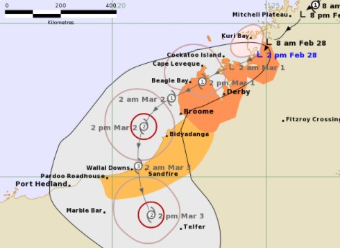La tempête tropicale Anika a touché le Nord-Ouest de l'Australie. Le système, a touché terre samedi soir près de Kalumburu, s'est accéléré depuis qu'il a atteint le West Kimberley et devrait maintenant toucher l'océan ouvert au nord-ouest de Broome tard mardi soir.