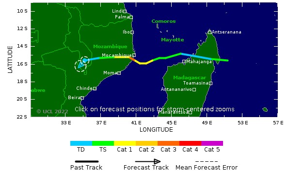 10 et 11/03: Le cyclone Gambe a touché le nord du Mozambique vendredi matin avec des vents violents et des pluies diluviennes qui ont causé de lourds dommages aux maisons et aux infrastructures, en plus de causer au moins 72 morts.