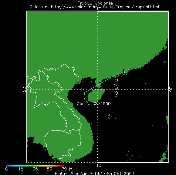 La tempête tropicale Goni a touché le sud-ouest de la Chine, apportant avec elle de fortes pluies et des vents violents qui ont généré une forte houle près des côtes. Goni a atterri sur la province du Guangdong avec des vents soufflant entre 80 et 90 km/h.