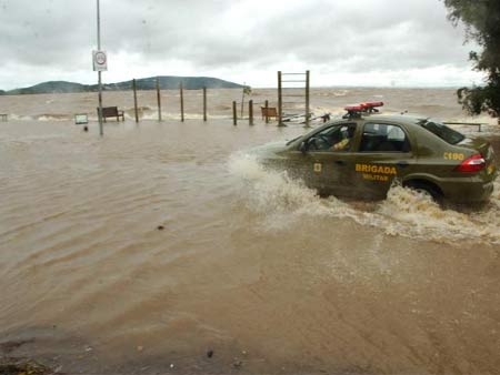 Une forte tempête tempérée a touché la région de Porto Alegre au Brésil. Des vents soufflant à plus de 100 km/h ont balayé cette région, déraciant des arbres, emportant des toitures et causant des avaries sur le réseau de transport d'électricité qui ont privés d'électricité plus de 37 000 foyers.