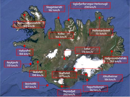 ​​Une forte tempête tempérée touché l'Islande avec des vents soufflant entre 119 et 263 km/h dans les endroits les plus exposés et en altitude. Dans le port de Reykjavik où le vent a atteint les 120 km/h, des bateaux ont rompu leur amarre et sont venu percuter les quais.
