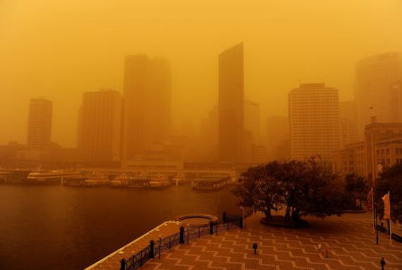Une énorme tempête de sable rouge a fortement perturbé touché l'agglomération de Sydney, plus grande ville australienne. Une couche de sable et de poussière d'un rose tirant sur le rouge a recouvert édifices et automobiles à Sydney.
