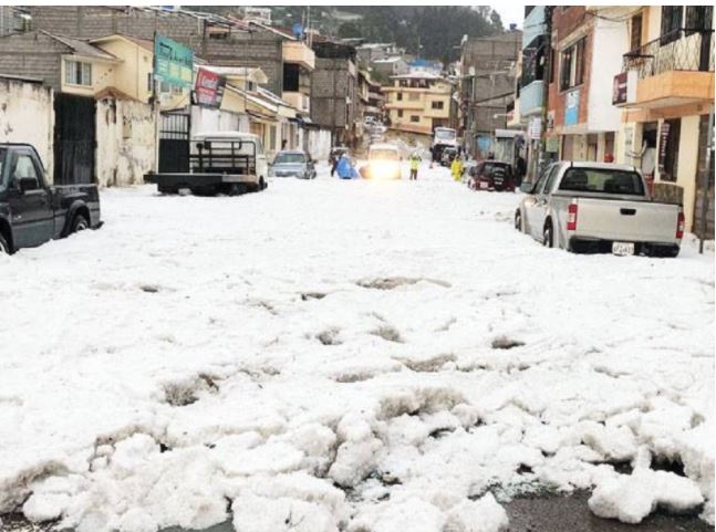 D'importantes chutes de grêle ont frappé la municipalité de Biblián, dans la province de Cañar, dans le centre-sud de l'Equateur. Les autorités locales ont confirmé que plus de 20 tonnes de glace ont été enlevées des routes par des machines.