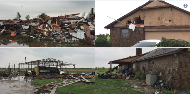 Un épisode de tornades et d'orages violents a touché les Etats du centre des États-Unis, provoquant des tornades, de la grêle et des inondations. Pas moins de 33 tornades ont été répertoriées. De violents orages isolés se sont abattus  dans le centre-sud des États-Unis, provoquant une tornade près de Sulphur, dans l'Oklahoma, et martelant Amarillo, au Texas, avec une grêle de la taille d'une balle de golf.