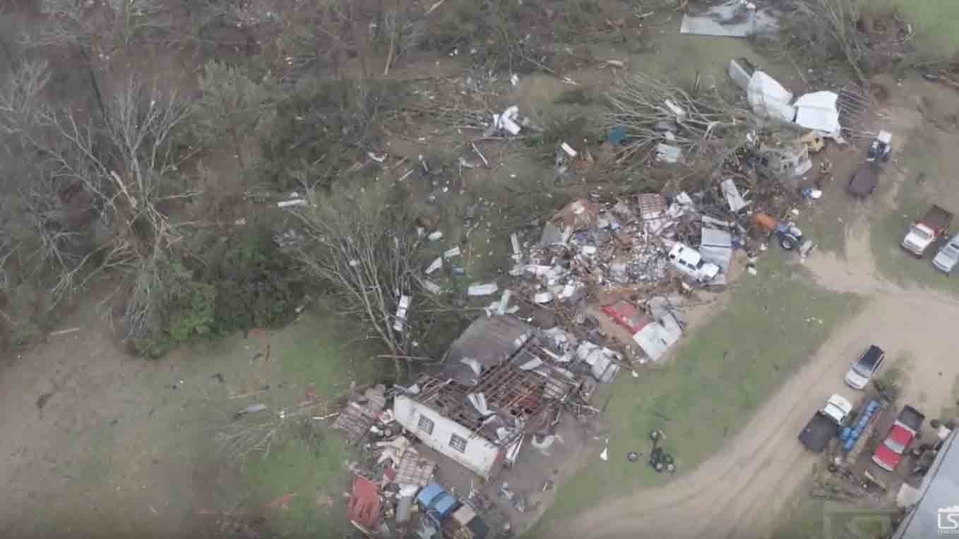 Plusieurs bâtiments ont été endommagés et des blessures mineures ont été signalées après le passage d'une forte tornade dans le nord-est de l'état du Mississippi .