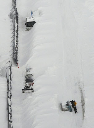 De très fortes chutes de neige ont frappé la partie nord de l'île principale de Honshu et de Hokkaido, 9 personnes ont été tuées.  Une mère et ses trois enfants dans la ville de Nakashibetsu ne pouvaient pas sortir de la voiture enneigée.