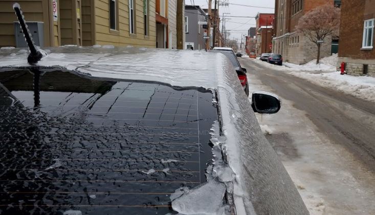 Les provinces canadiennes du Québec et du Nouveau Brunswick ont été touchées par un fort épisode de pluie verglaçantes qui a notablement affecté la vie de la population. Au plus fort de l'événement, 30 000 foyers ont été privés de courant en raison des avaries provoquées par l'accumulation de glace sur les lignes électriques.