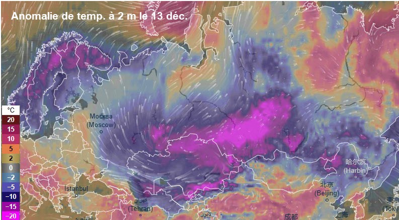 • 04 au 07/12 : alerte vague de froid pour le quart Nord-Ouest des USA et le Québec