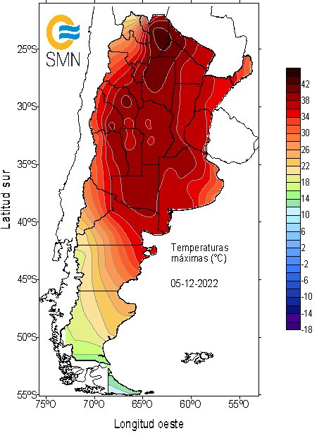 08/12: Une grande partie de l'Argentine a "cuit" durant l'après-midi du mercredi avec des maxima extrêmes qui n'ont été observés cette année que lors de la puissante canicule qui a touché le pays au mois de janvier.