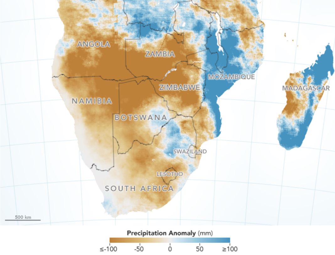 L'Afrique du Sud, le Bostwana, le Lesotho; la Zambie et l'Angola connaissent une importante sécheresse qui a occasionné d'importantes pertes agricoles et de gros problèmes d'approvisionnement en eau des populations.