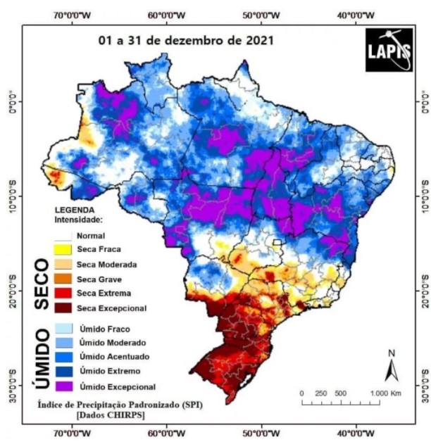 23/08 : Comme prévu, le niveau de précipitations y est inférieur à la moyenne normalement observée en cette saison. 40 % du territoire national souffre en ce mois d’août du manque de pluie et dans certaines régions des États de Minas Gerais et de São Paulo, la sécheresse est classée par le Centre national de surveillance et d’alerte des désastres naturels (Cemaden) à un niveau « exceptionnel », le plus élevé.