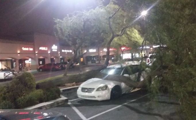 Des vents forts ont touché la région de Las Vegas et ont causé des dommages matériels.  Le Service météorologique national a indiqué que des rafales à 113 km/h on tété enregistrées à la base aérienne de Nellis.