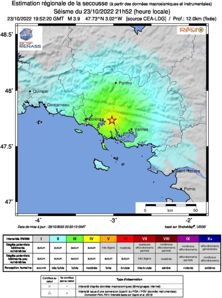 Dimanche 23 octobre au soir, aux alentours de 22h15. Un séisme de magnitude 3,9 sur l’échelle de Richter a été enregistré dans le Morbihan par le réseau national de surveillance sismique.